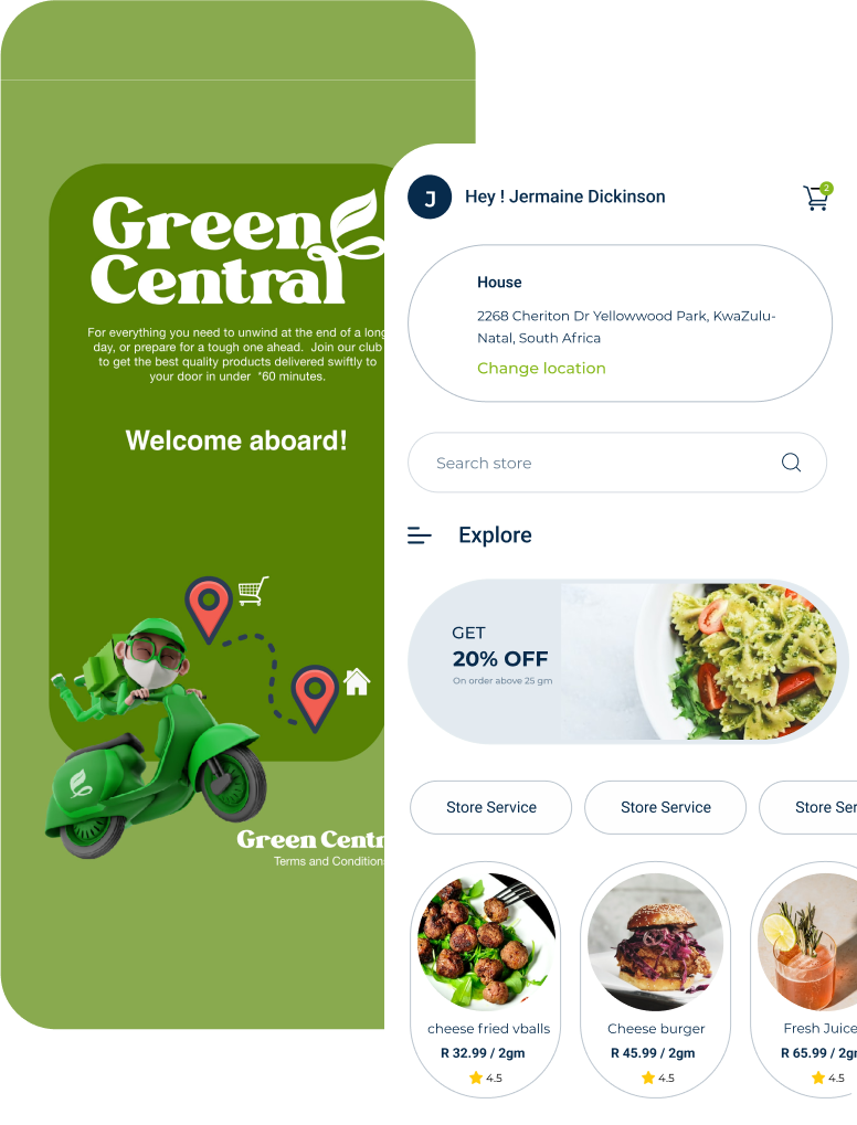 Your own branded iOS or Android App, allowing your customer to view your menu and products, order in real time and have the items delivered or collect their order at store level